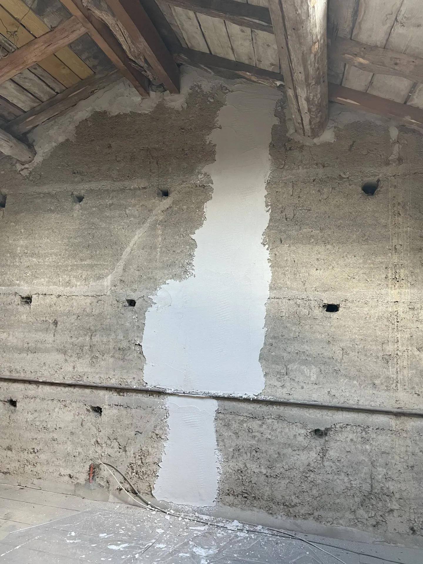 - Reprise de l'enduit dégrossi à la chaux des murs en pisé
