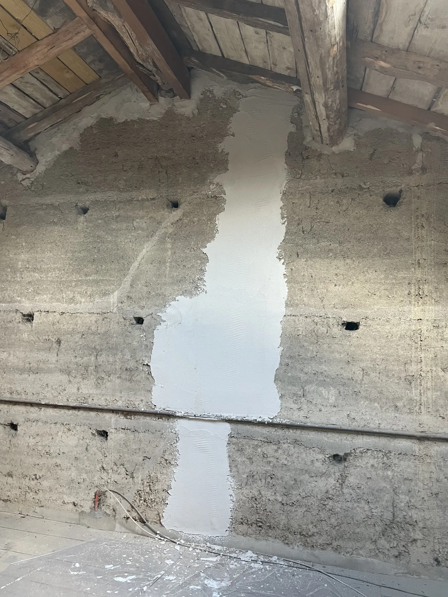 reprise de l’enduit à la chaux sur les murs en pisé