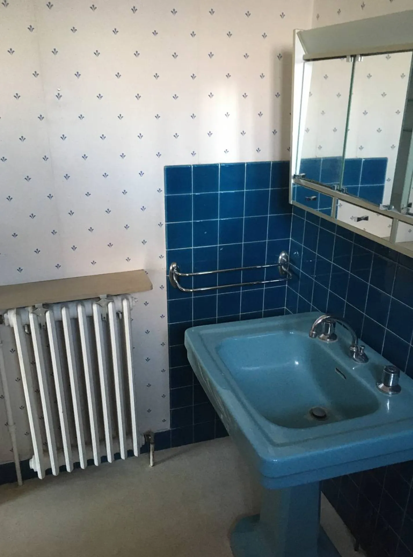 - L’armoire de toilette a été remplacée par un miroir éclairé par un spot led chromé pour plus de style