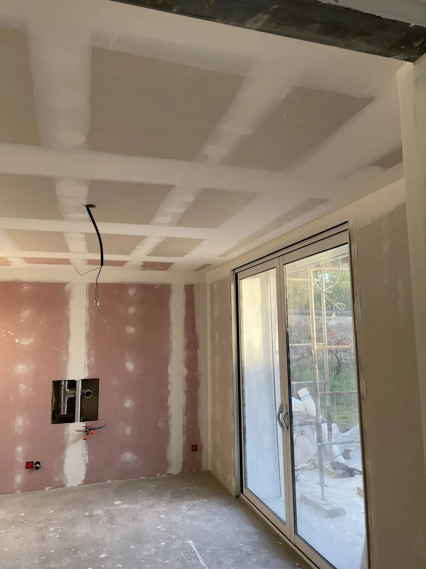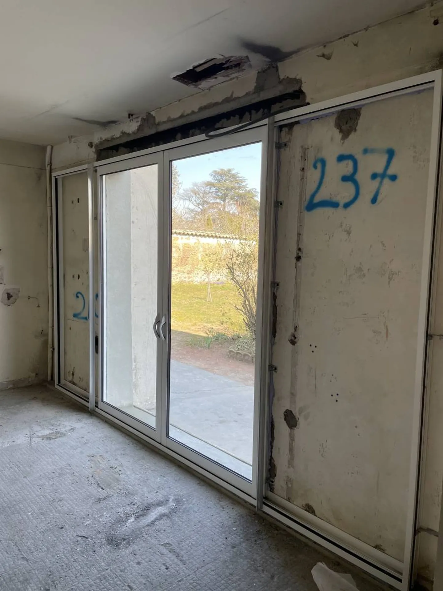 Dans cette maison de caractère 19ème, la transformation d'une fenêtre en baie vitrée à Trévoux (01) a considérablement amélioré la luminosité de la maison tout en lui offrant modernité et un accès direct de la (future) cuisine à la terrasse et bien sûr vers le jardin.